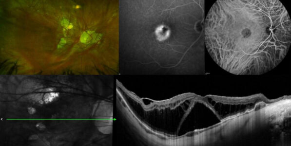 - La maculopathie myopique dite néovasculaire nécessite des injections intra-vitréennes d’anti-VEGF sans délai afin de permettre la régression des néovaisseaux et la récupération visuelle.