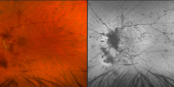 Examens de suivi : Un examen ophtalmologique complet est nécessaire incluant une vérification à la lampe à fente, une prise de tension oculaire, un fond d’œil ou une rétinographie grand champ, un OCT sont régulièrement réalisés pour évaluer l’état de la rétine et la réponse au traitement. L’angiographie peut être renouvelée au cours du suivi.